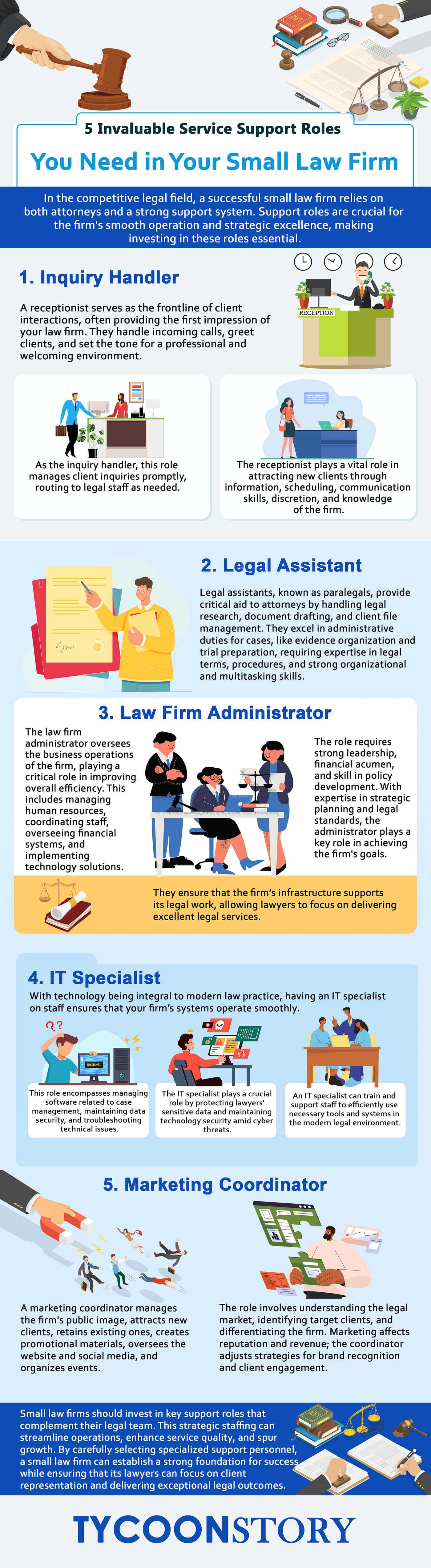 In the competitive arena of legal services, the backbone of any successful small law firm is not just the attorneys who argue in court but also the robust support system working diligently behind the scenes. Support roles are the unsung heroes that ensure the smooth operation of a law firm, and their importance cannot be overstated. As a proprietor or partner at a small law firm, recognizing and investing in key service support roles is not merely an operational necessity but a strategic move towards efficiency and excellence.