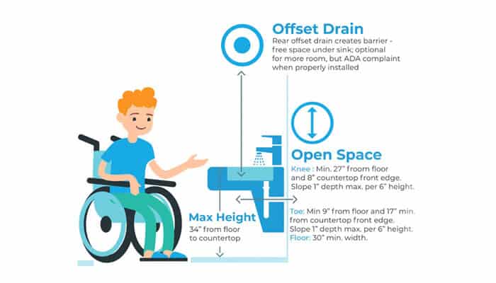 The safest bet is to buy an ADA-compliant bathroom sink from a manufacturer with specialized models available.