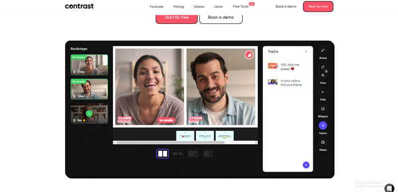 Engaging features of this free webinar tool with AI support save attendees time and simplify their access. In this sense, it can underline the audience’s message on-stream, have contemporary chat panels, and offer dynamic web layouts. It also provides easy integration with your marketing stacks, widgets, branding themes, and confirmatory reminders.