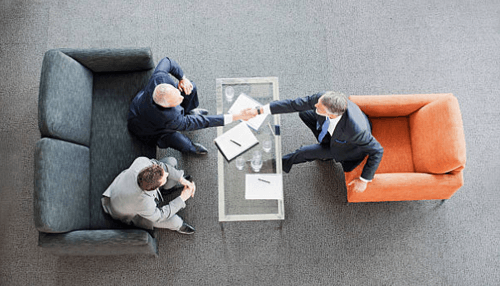 Two professionals shaking hands over a business contract, marking the agreement to sell your business.